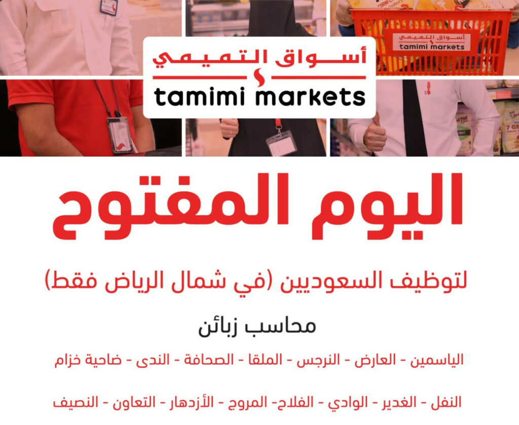 (أسواق التميمي) تعلن عن اليوم المفتوح لتوظيف السعوديين بمسمى (محاسب زبائن) في شمال الرياض، وذلك من خلال التفاصيل والشروط الآتية.